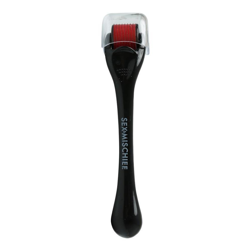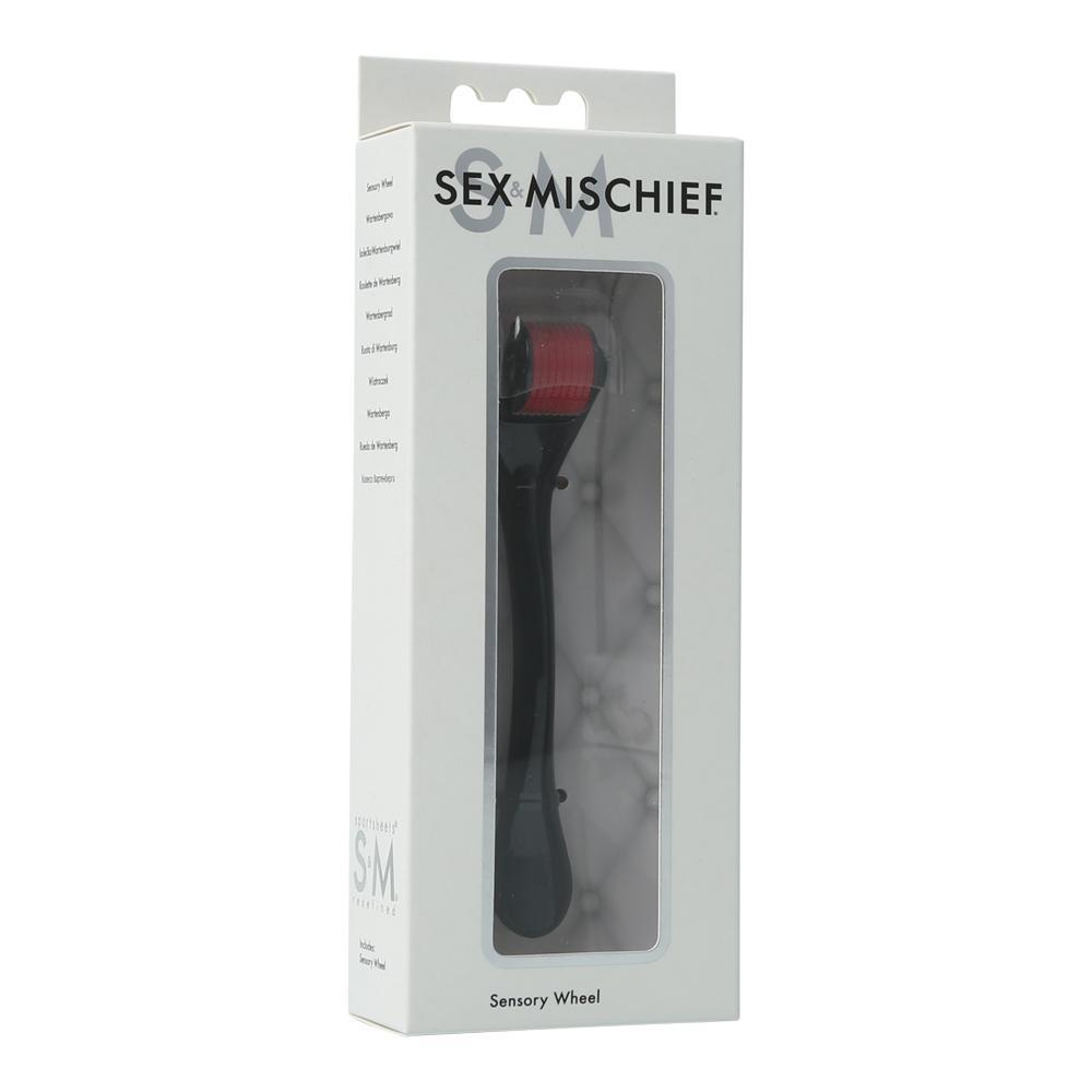 Add a blindfold for optimal sensory play while you run the wheels along your partner’s skin. Its sleek black handle is nicely accessorized with its red wheels.